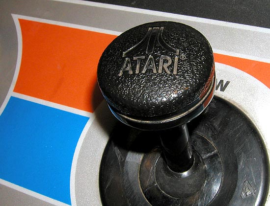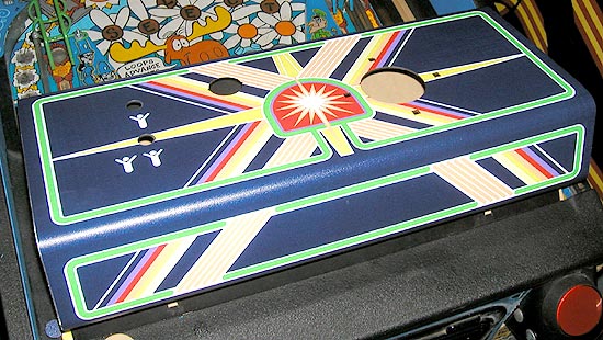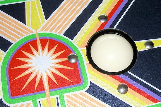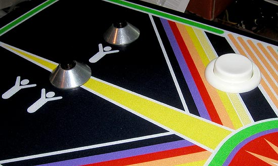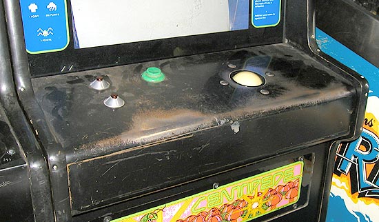 Excanged the leaf button for a Happ button with microswitches. Yeah, I know it's a butt rape on an old Atari cab, but I like Happ buttons. OK!