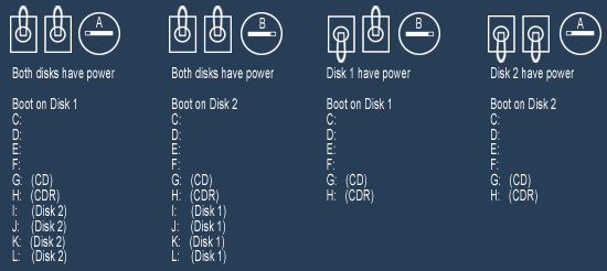key witch drive Im going to boot from. Light 1 = drive 1 have power. Light 2 = drive 2 have power Both lights = Both drives have power. |